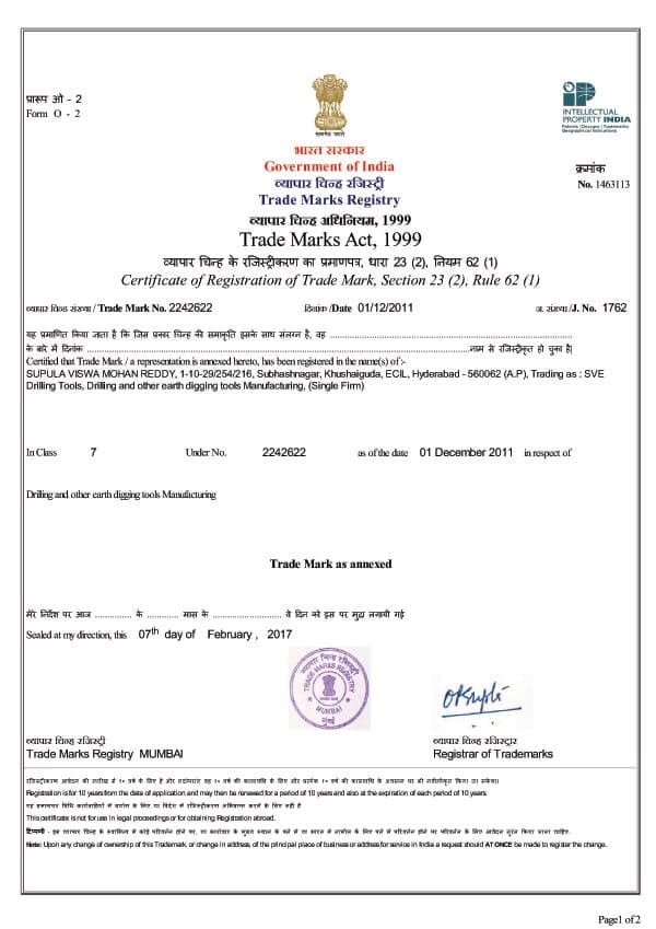 SVE which has a renowned name in manufacturing DTH bits & hammers is founded by Mr. S V Mohan Reddy, who has got a rich vision to cater quality products at cost-effective prices in water well, mining and construction segments of DTH drilling.