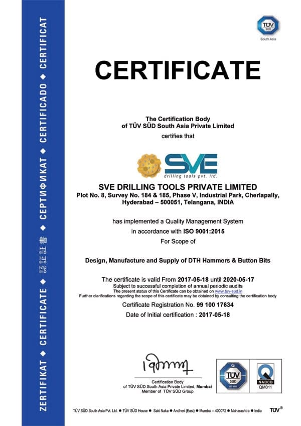 SVE, which is a proven name in rock drilling tools in India, is a leading global provider of rock drilling tools for construction, mining and water well segments. The Product range includes DTH Hammers, DTH Bits, overburden drilling systems, and Top Hammer products which are accepted globally in more than 20 countries including India.